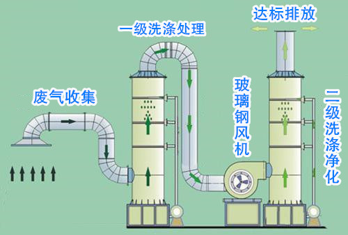 玻璃鋼洗滌塔在使用的時(shí)候均與玻璃鋼風(fēng)機(jī)搭配使用(參照上圖)。兩者之間使用玻璃鋼風(fēng)管和彎頭等配件連接在一起。
